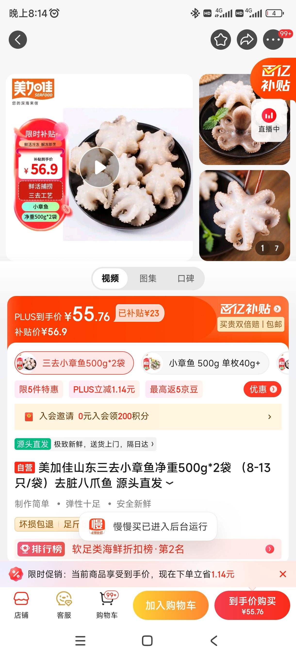 此款商品目前活动售价56.9元,京东百亿补贴下单1件,折算单价56.9元。近期价格还可以,感兴趣的慢友可以下手