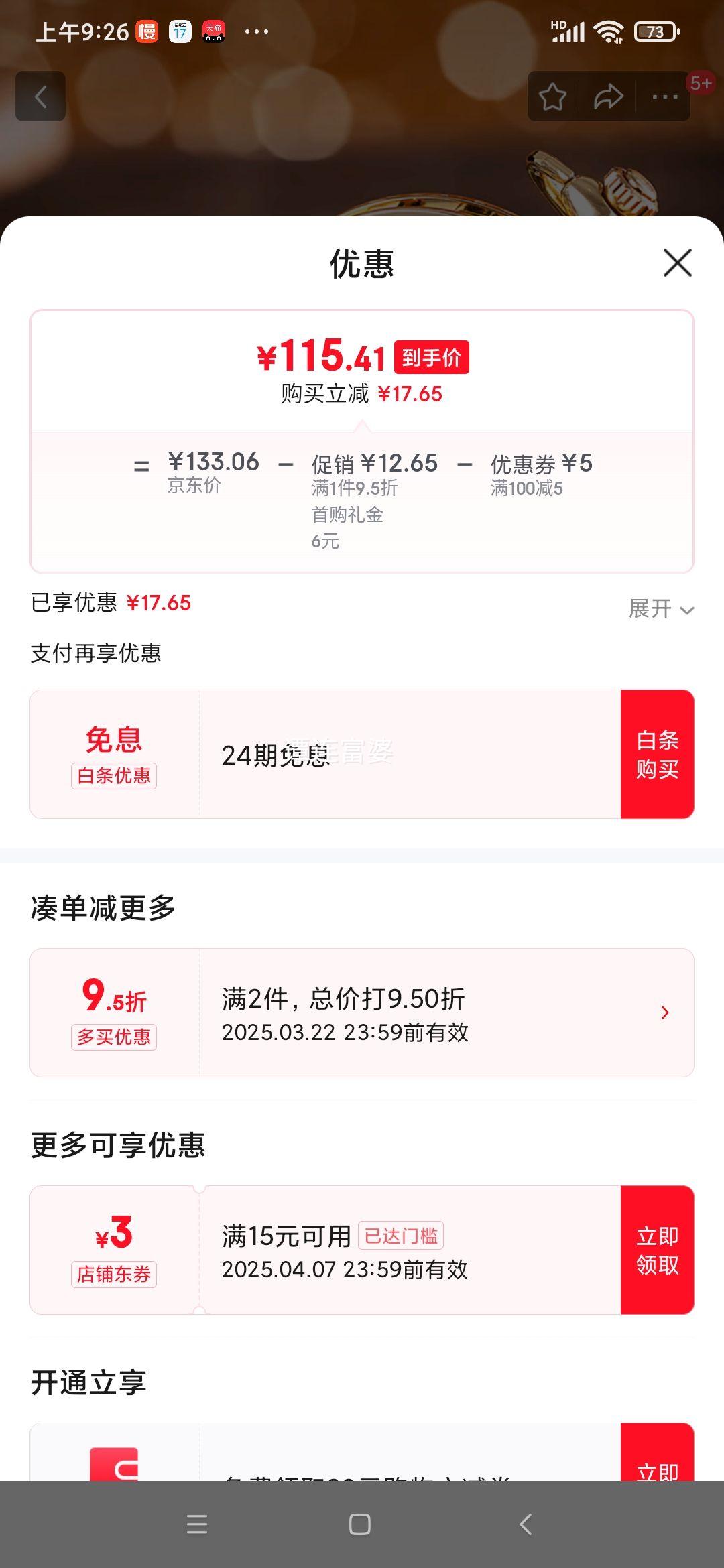 满1件,打9.5折