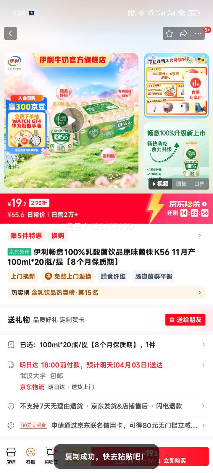返20超市卡,到手79.1元!!!