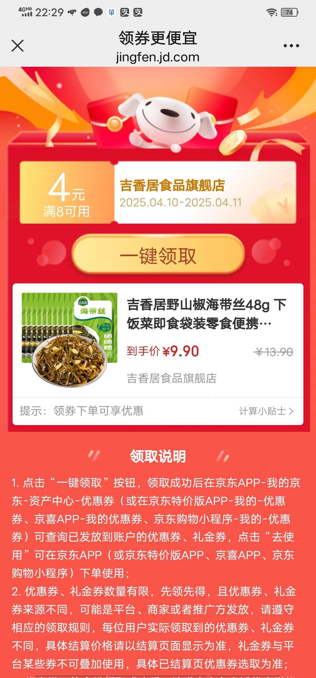 138元(需领券)