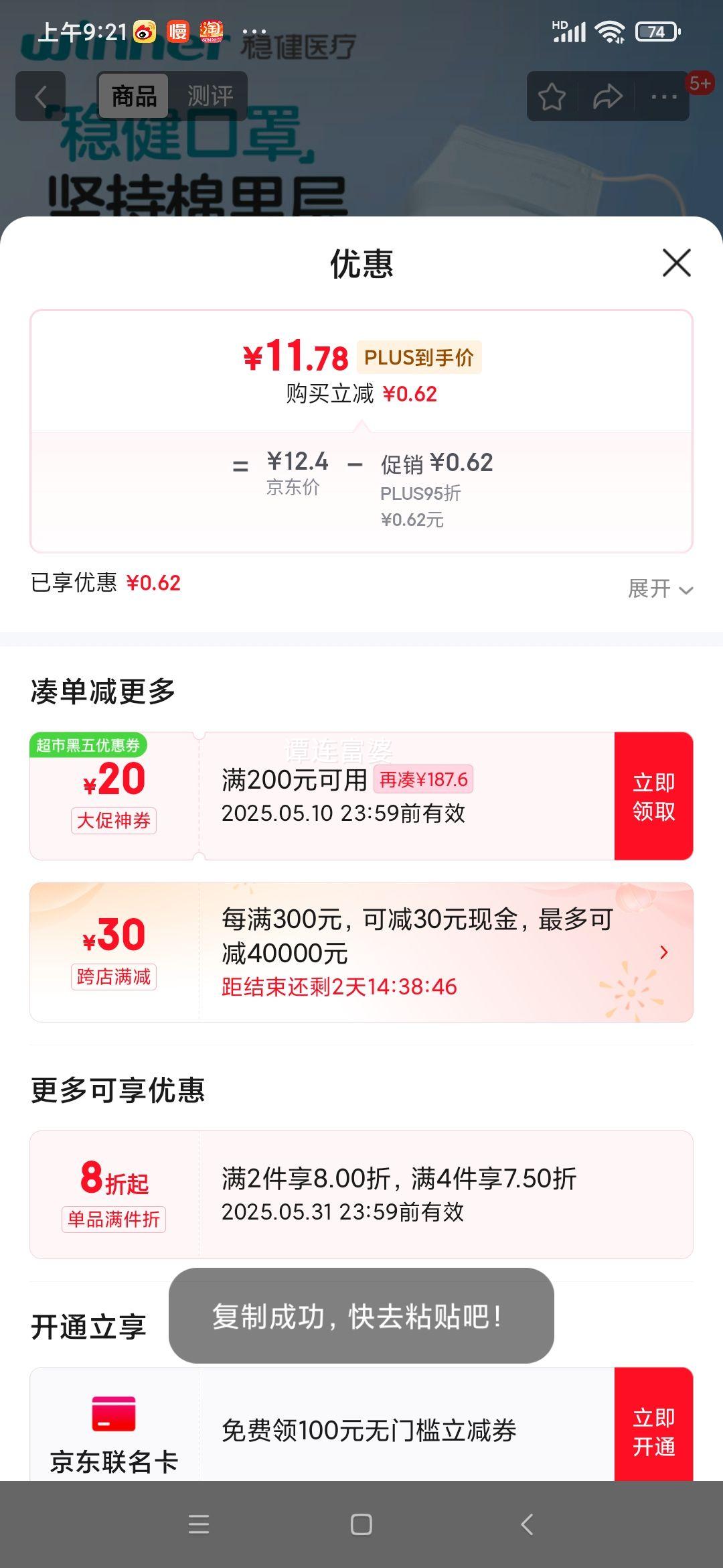 满1元,打9.5折