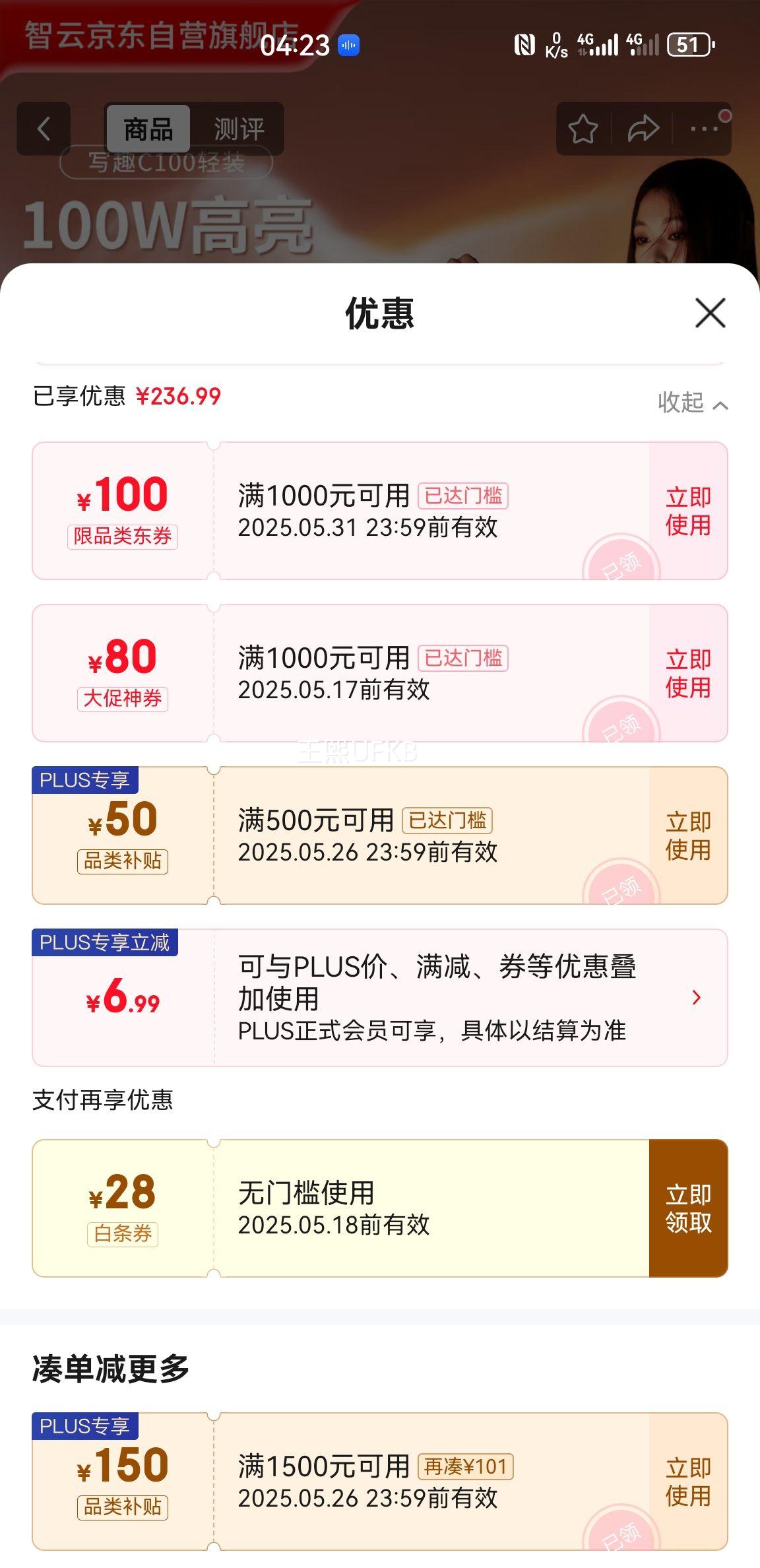 满1500元减150元
