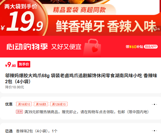 3.9元(需换购,可以重复购买,部分地区无货)