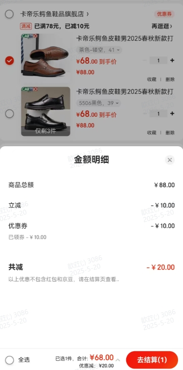 68.56元(共68.56元+10.44元淘金币)