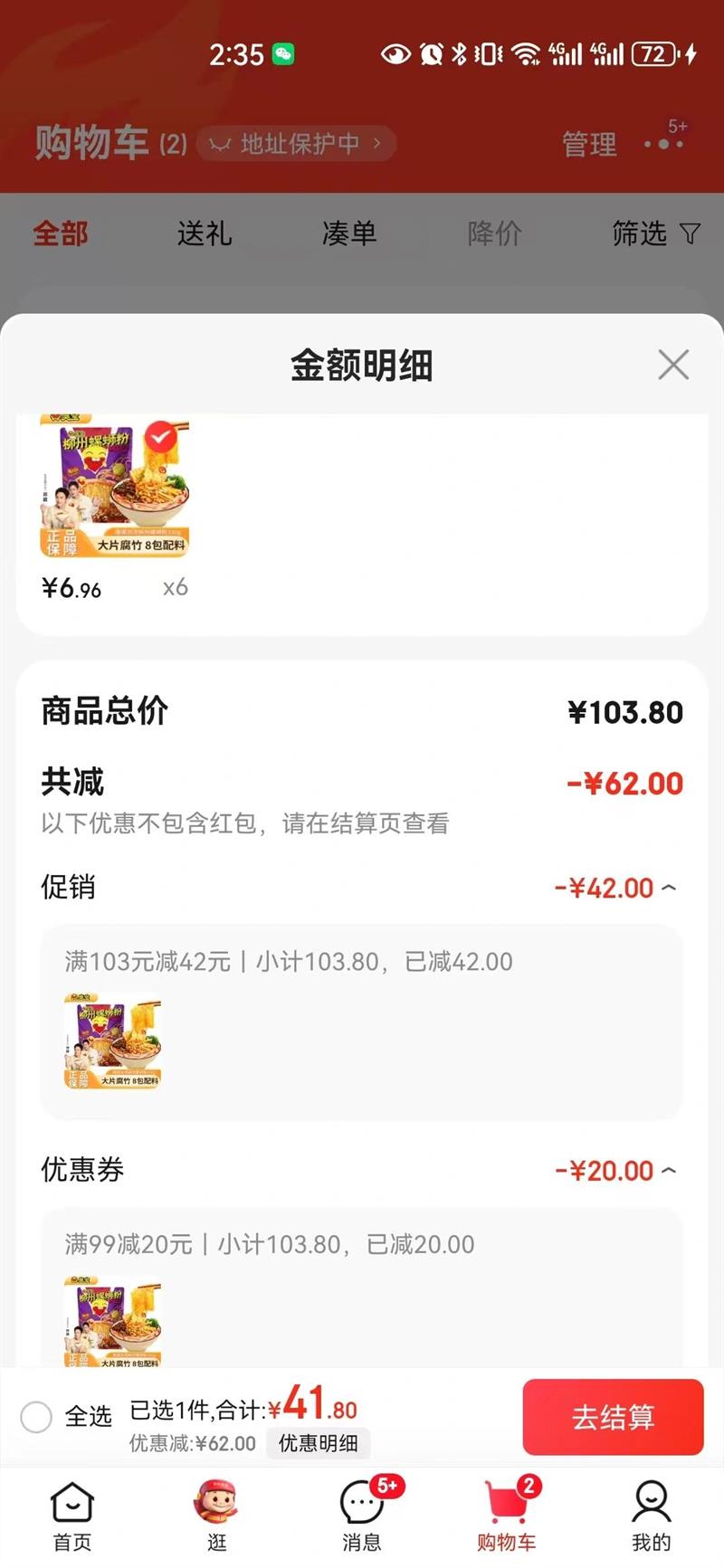 21.41元(叠加全能卡红包后19.41元)