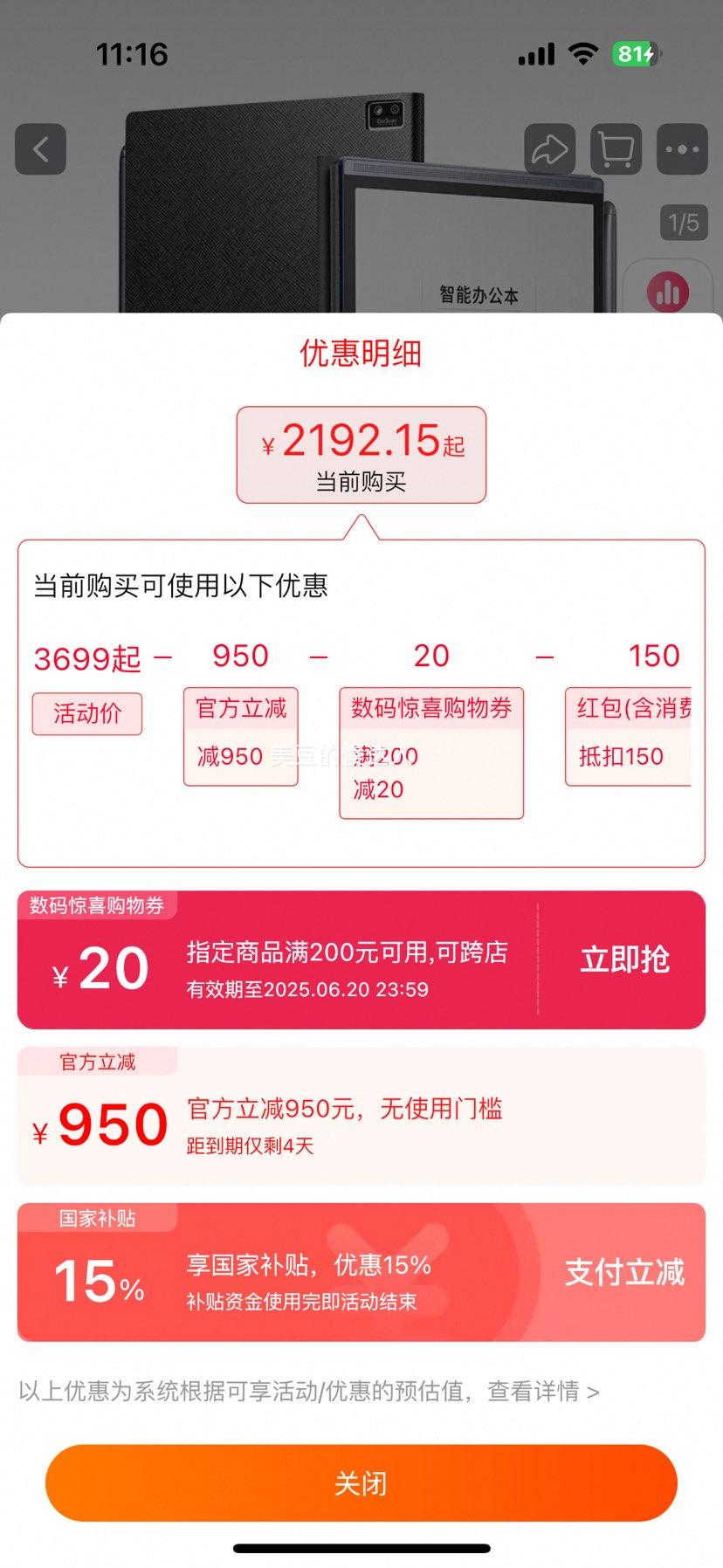 官方立减950元