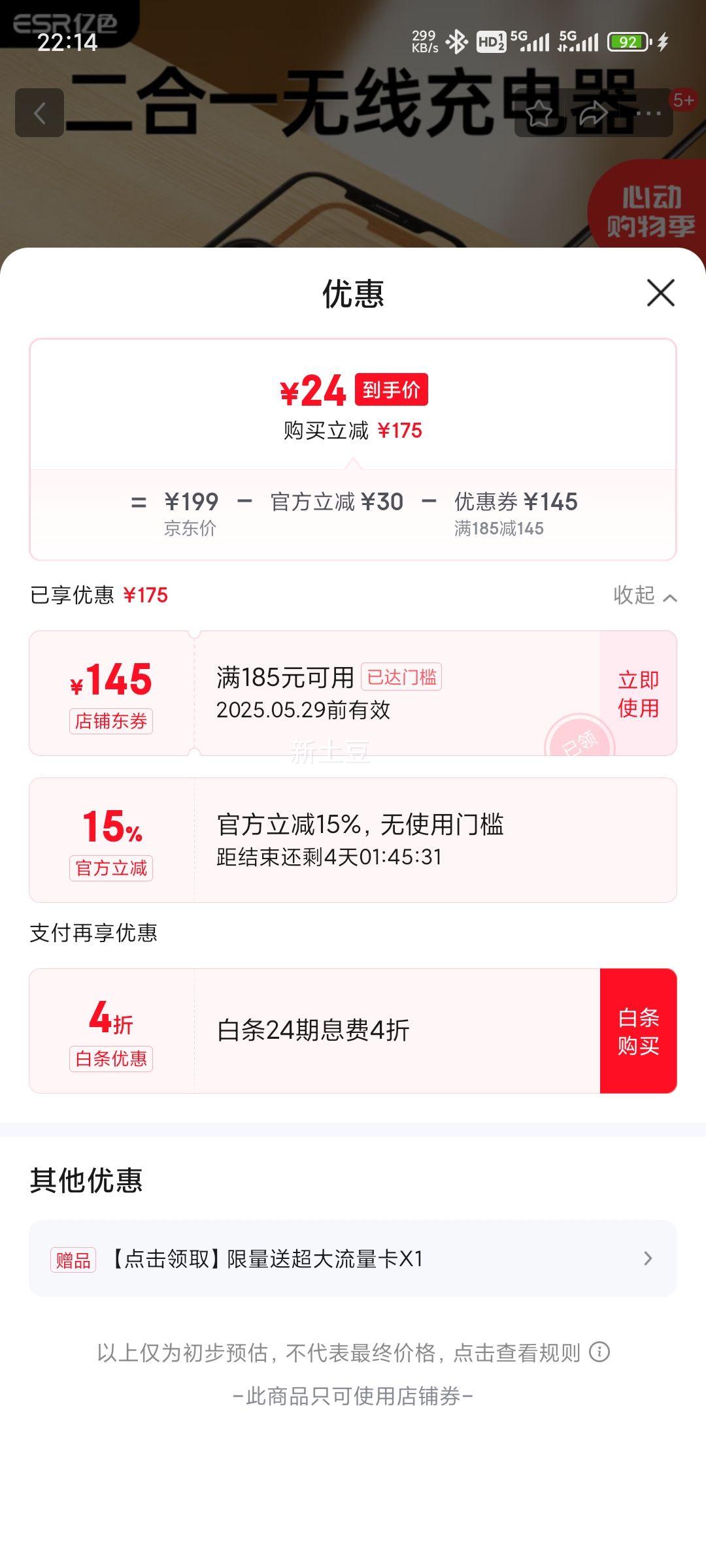 21.41元(叠加全能卡红包后19.41元)