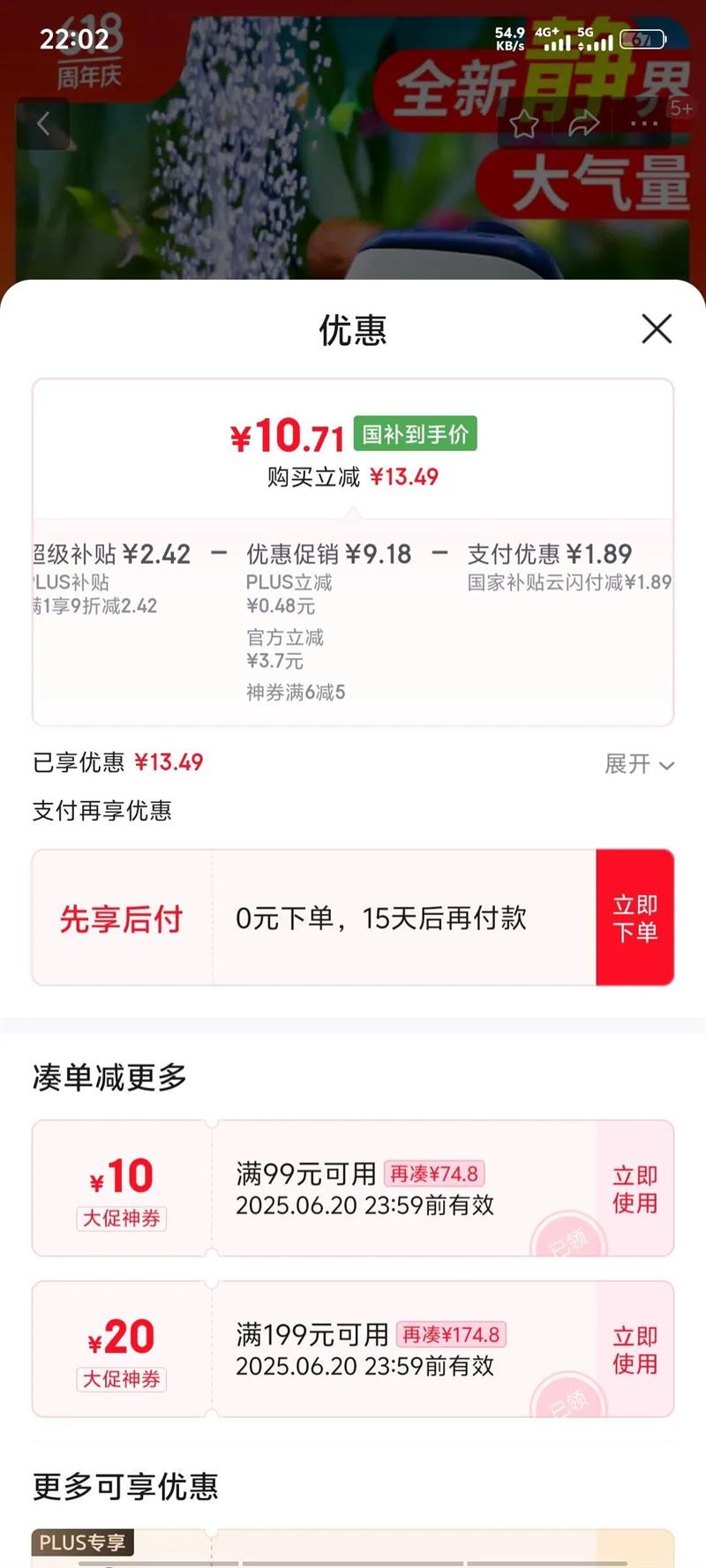 15%起减3.08元