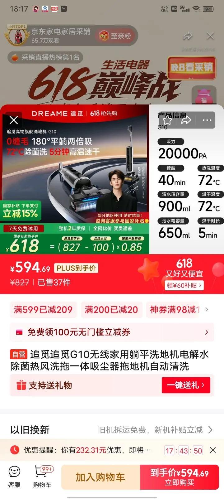 直播间搜“610”领209元券