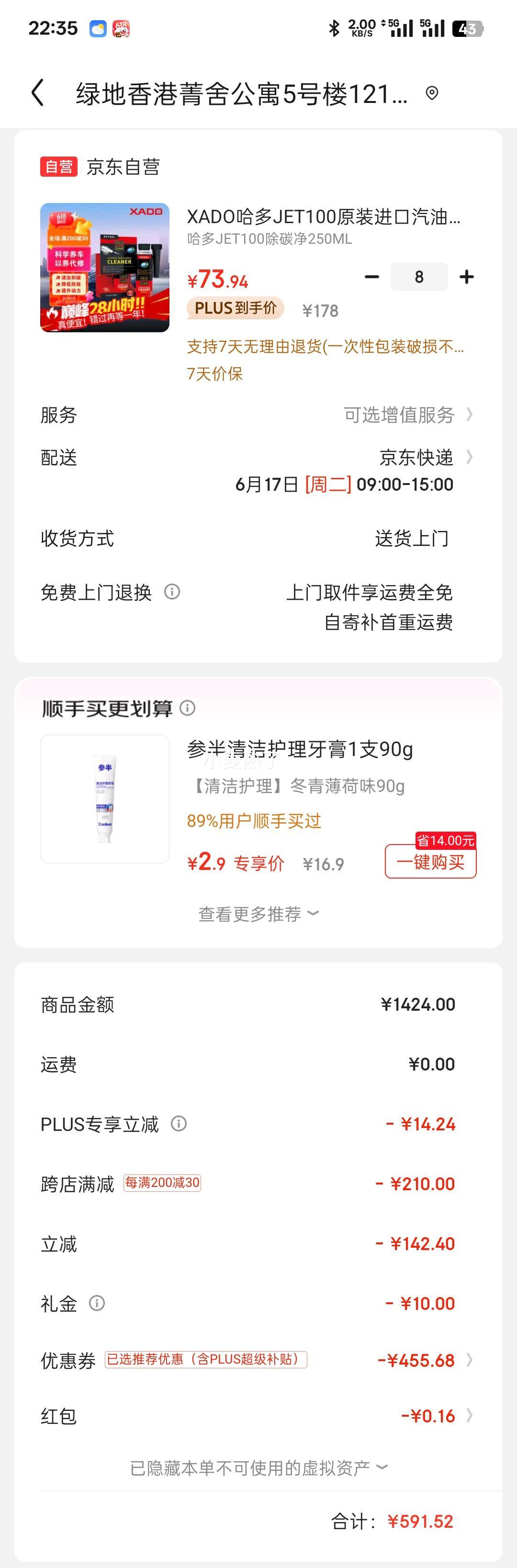 21.41元(叠加全能卡红包后19.41元)