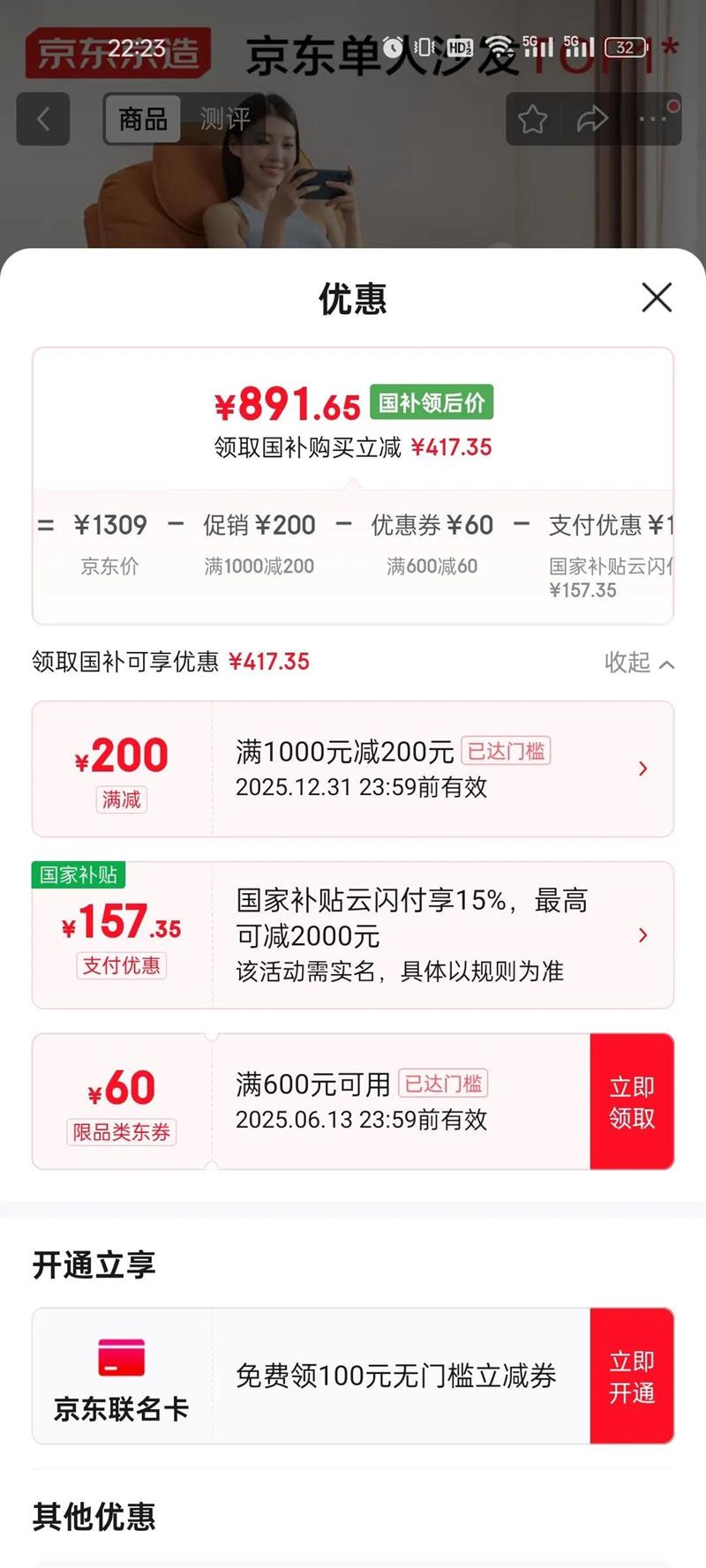 15%起减157.35元