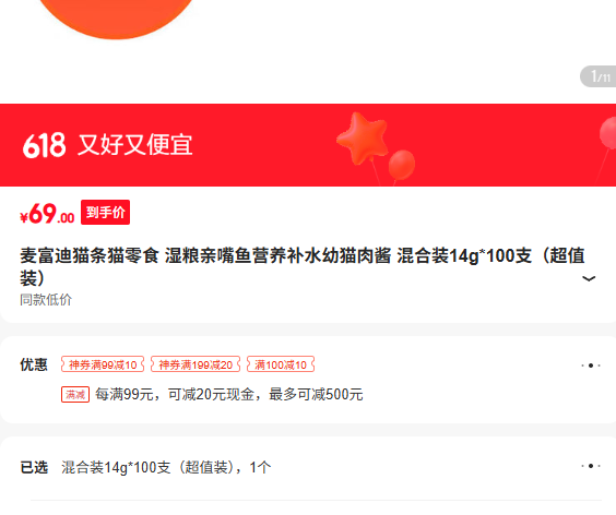 每满99减20,最高减500元(500)