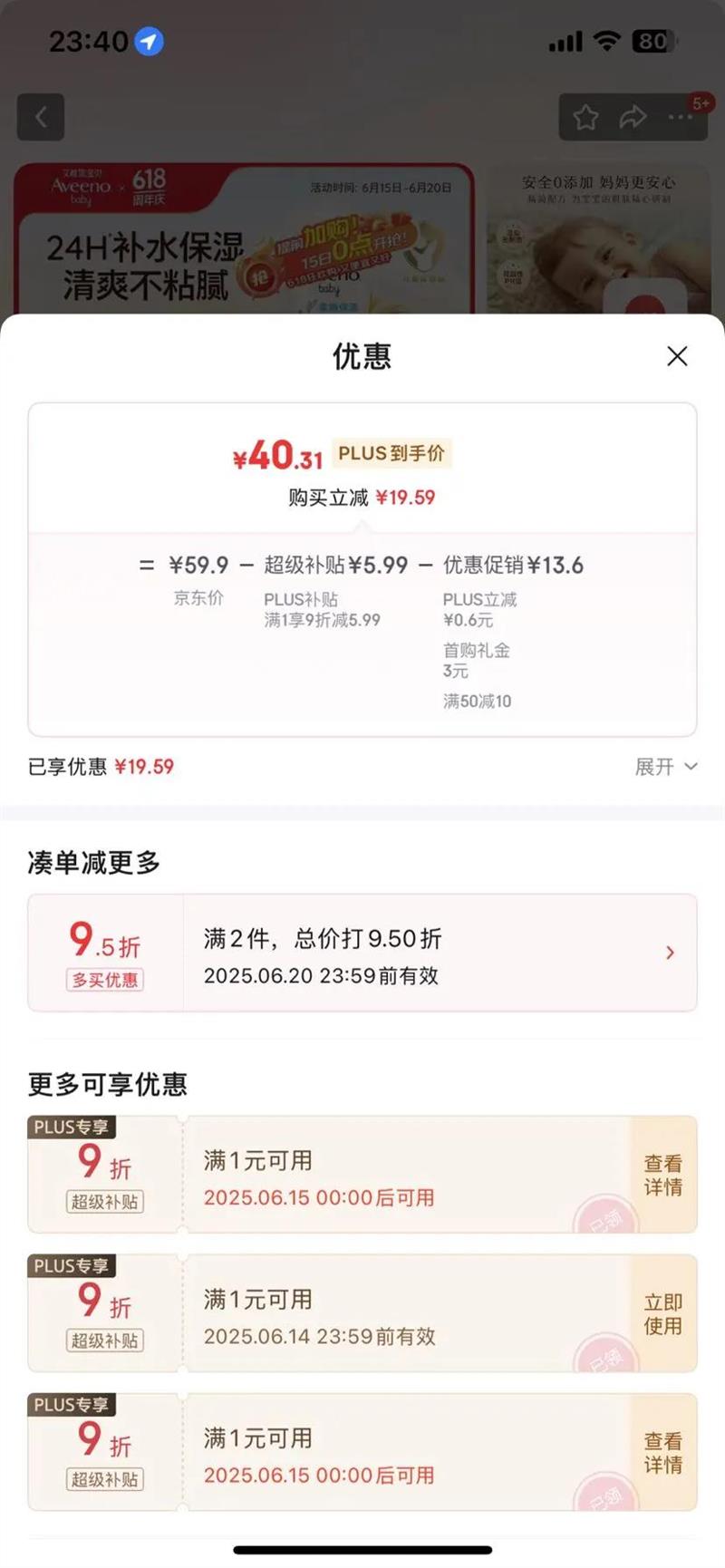 plus立减0.6元
