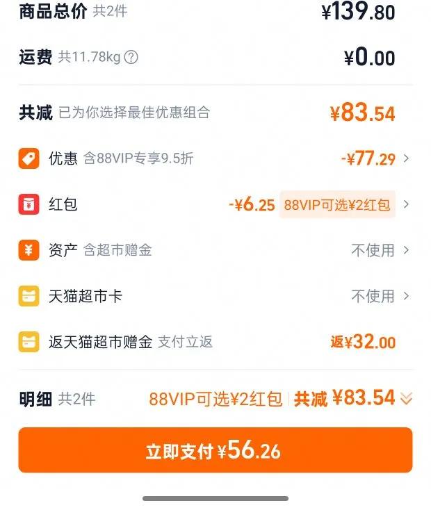 买1件返16元天猫超市卡