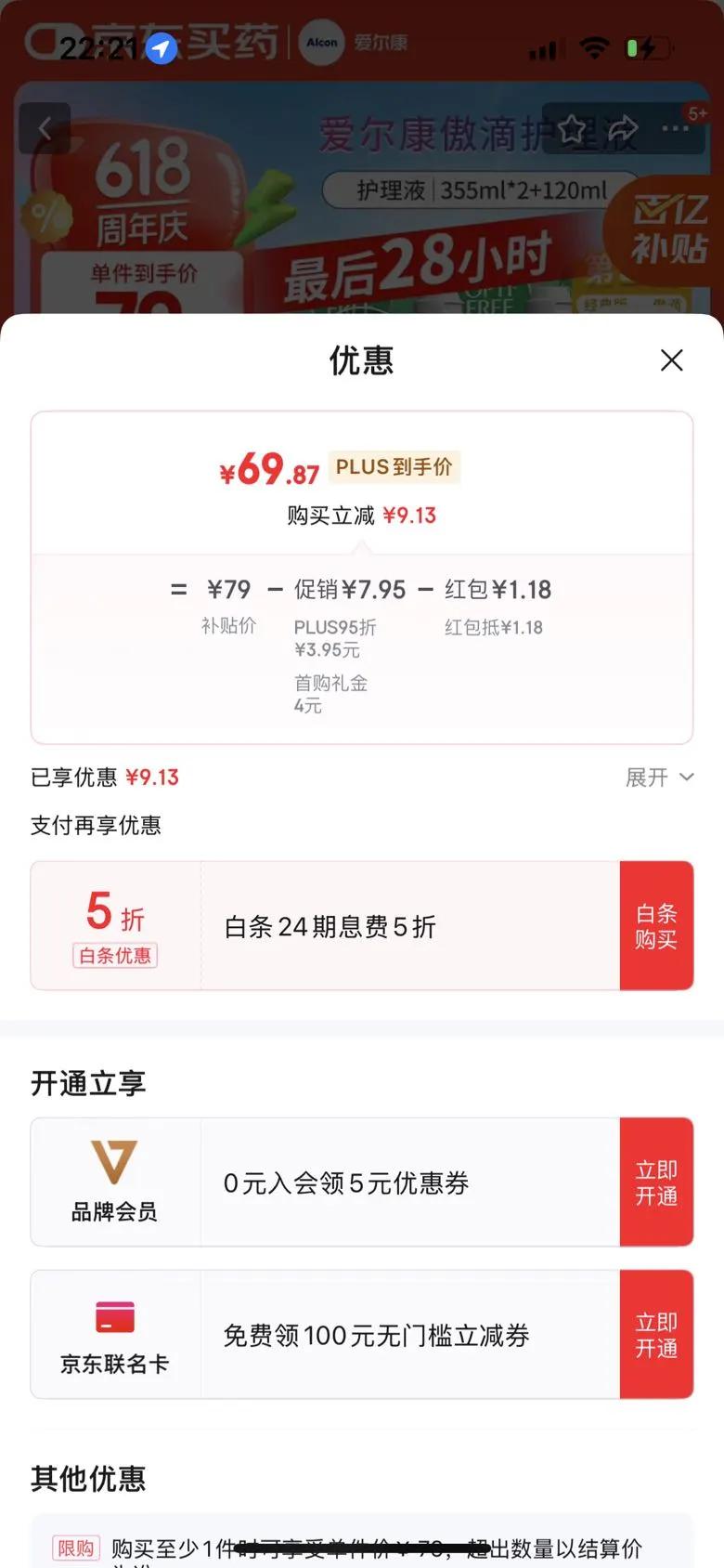 22.31元(叠加全能卡红包后20.31元)浙江、江苏、陕西等地区可做到,苏州低至17.56元