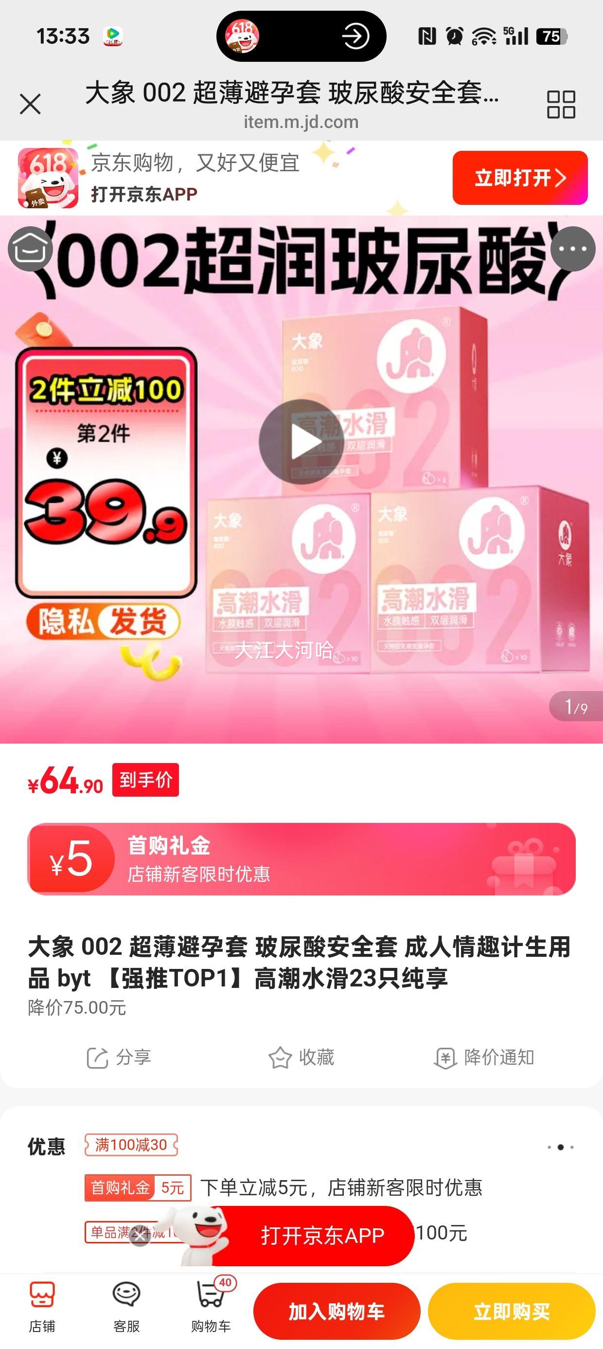 满1件减40元