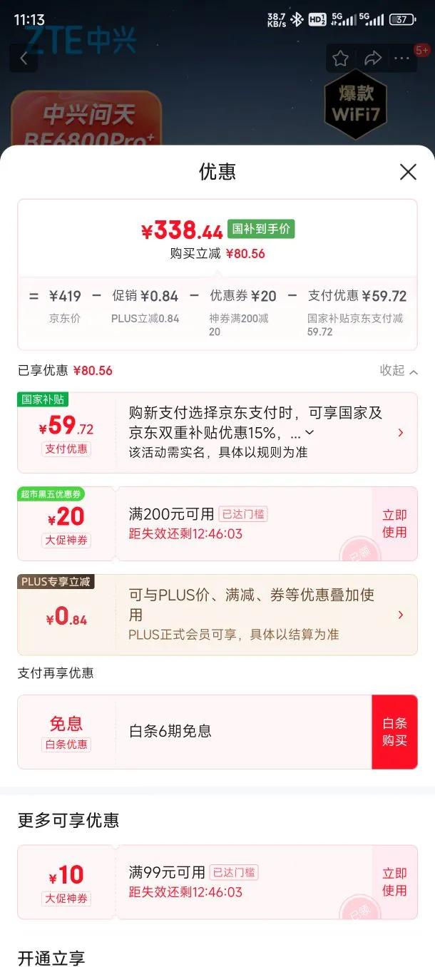 plus会员立减0.84