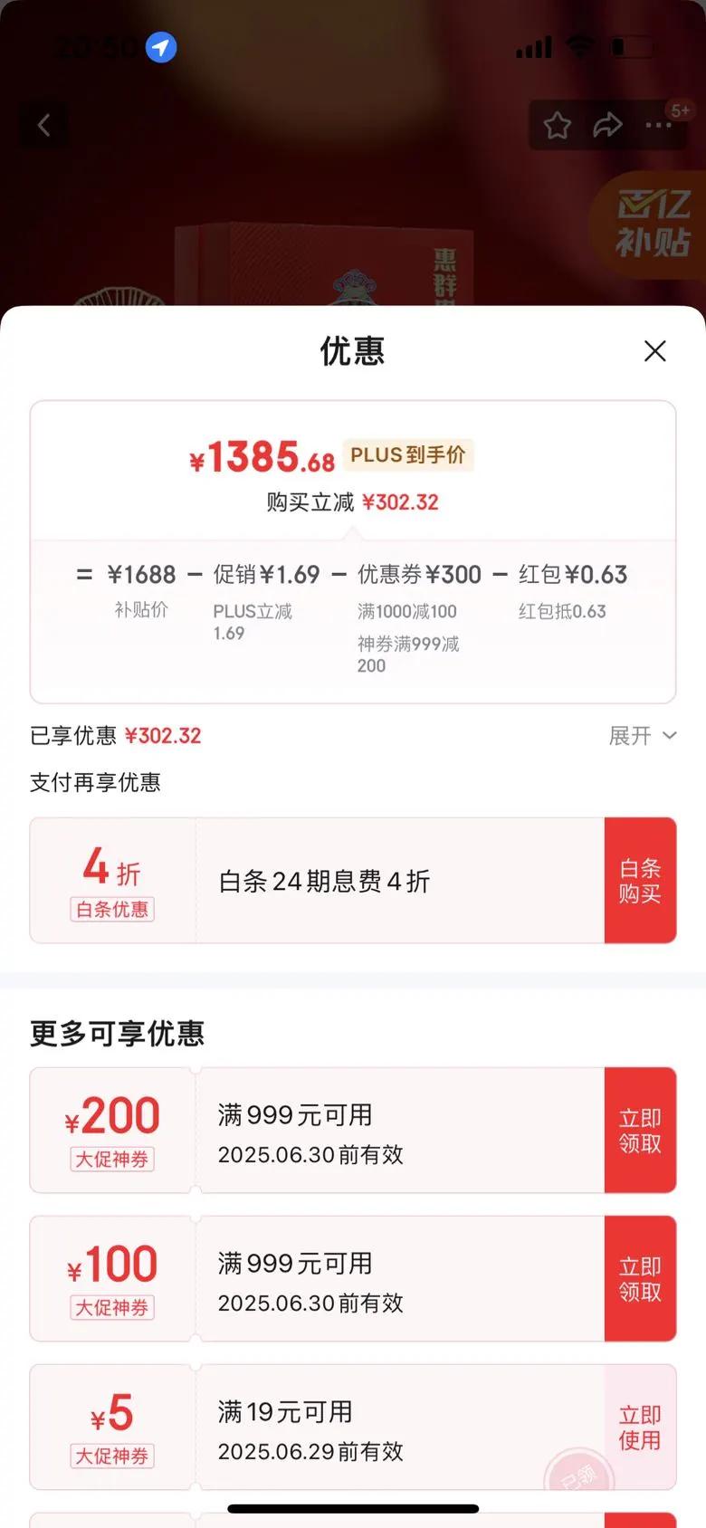 plus会员立减1.69元