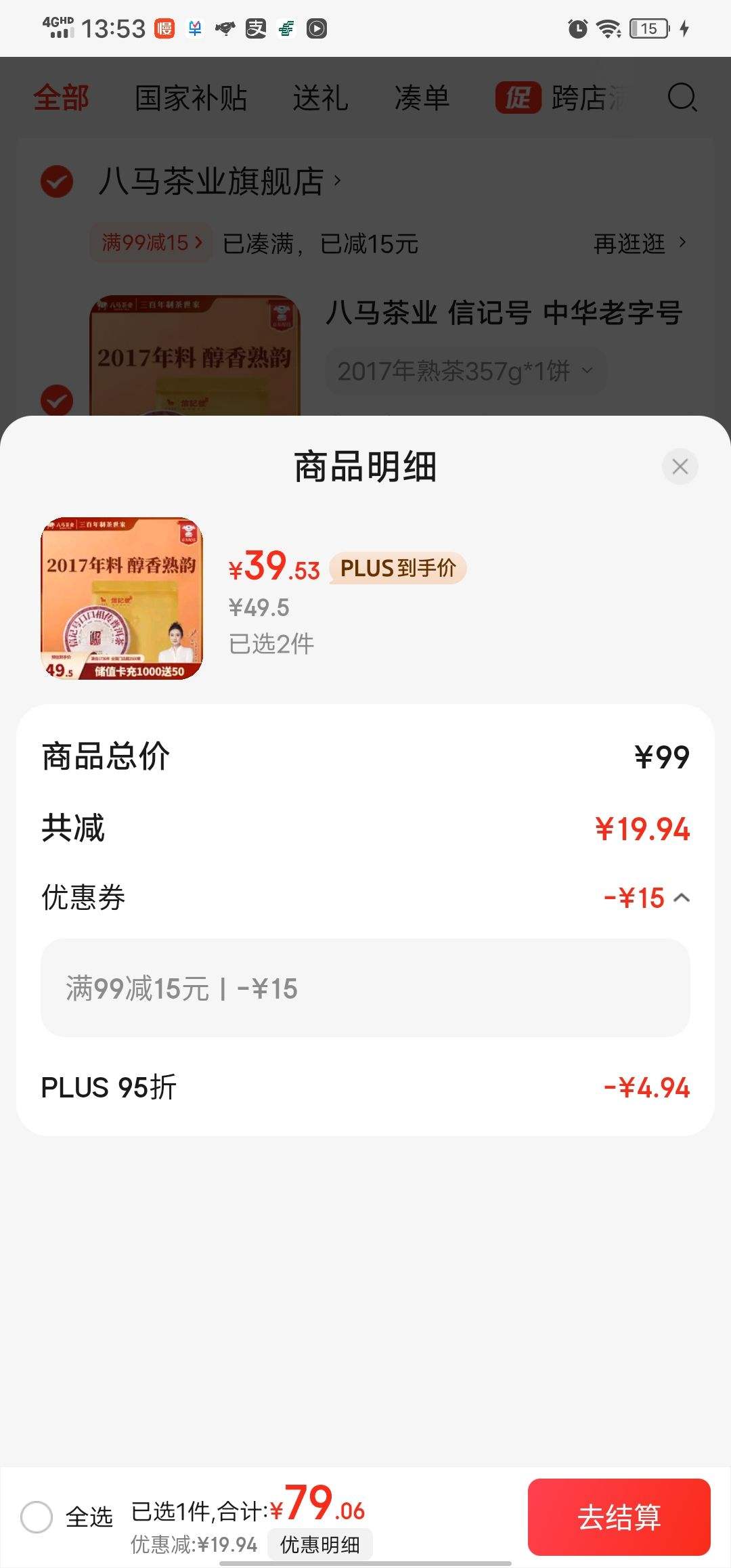 满99元减15元
