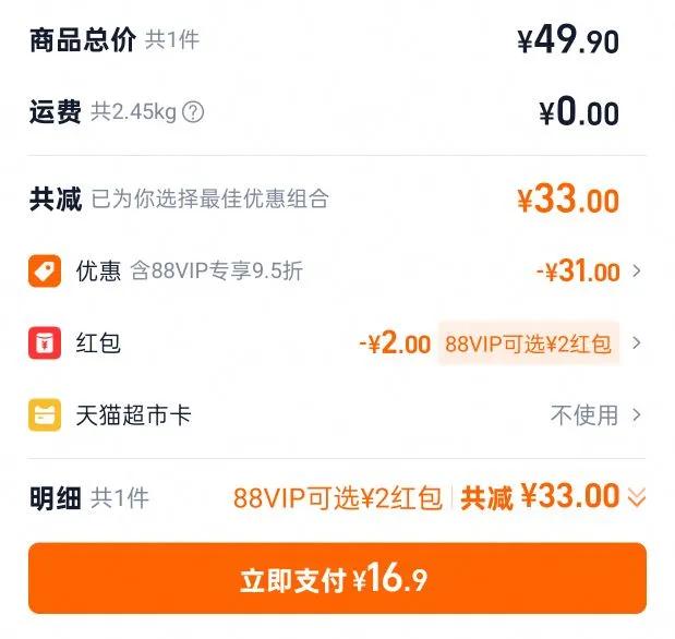 16.66元(叠加全能卡红包后14.66元)杭州、苏州可做到