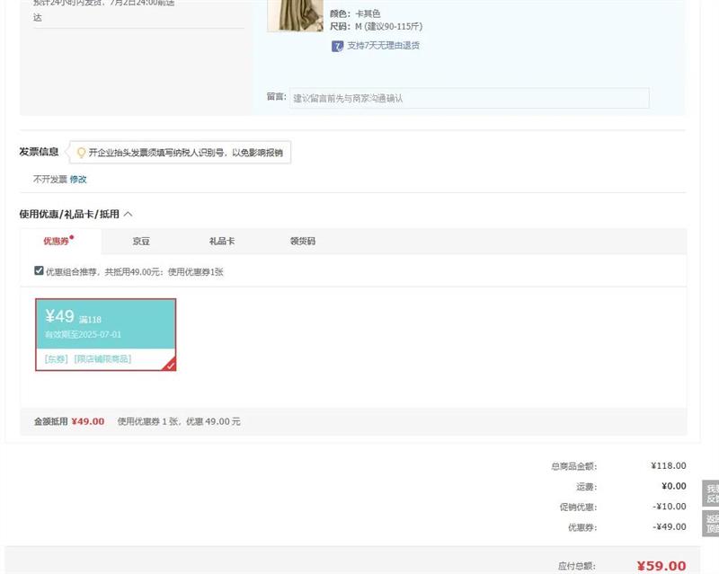 满118元减49元