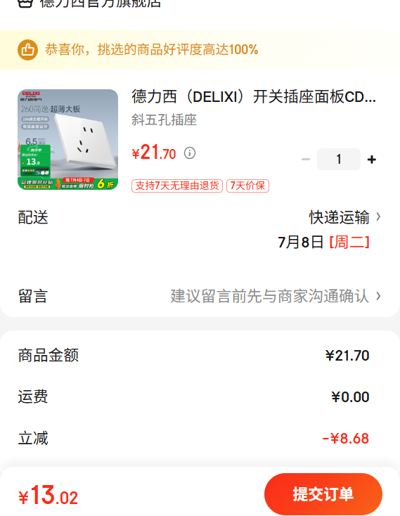 满1件,打6折