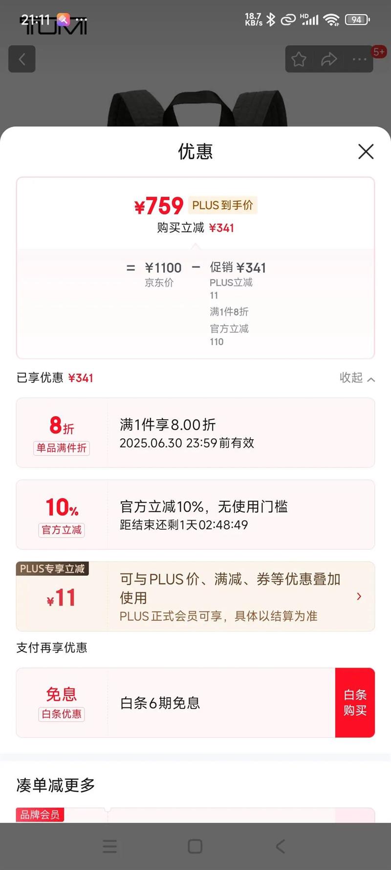 立减10%