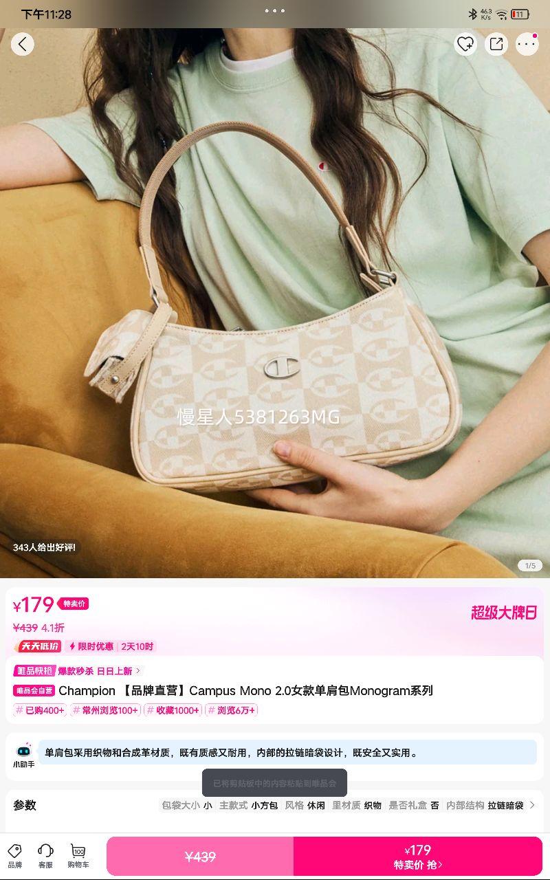 【品牌直营】Campus Mono 2.0女款单肩包Monogram系列已结束179元