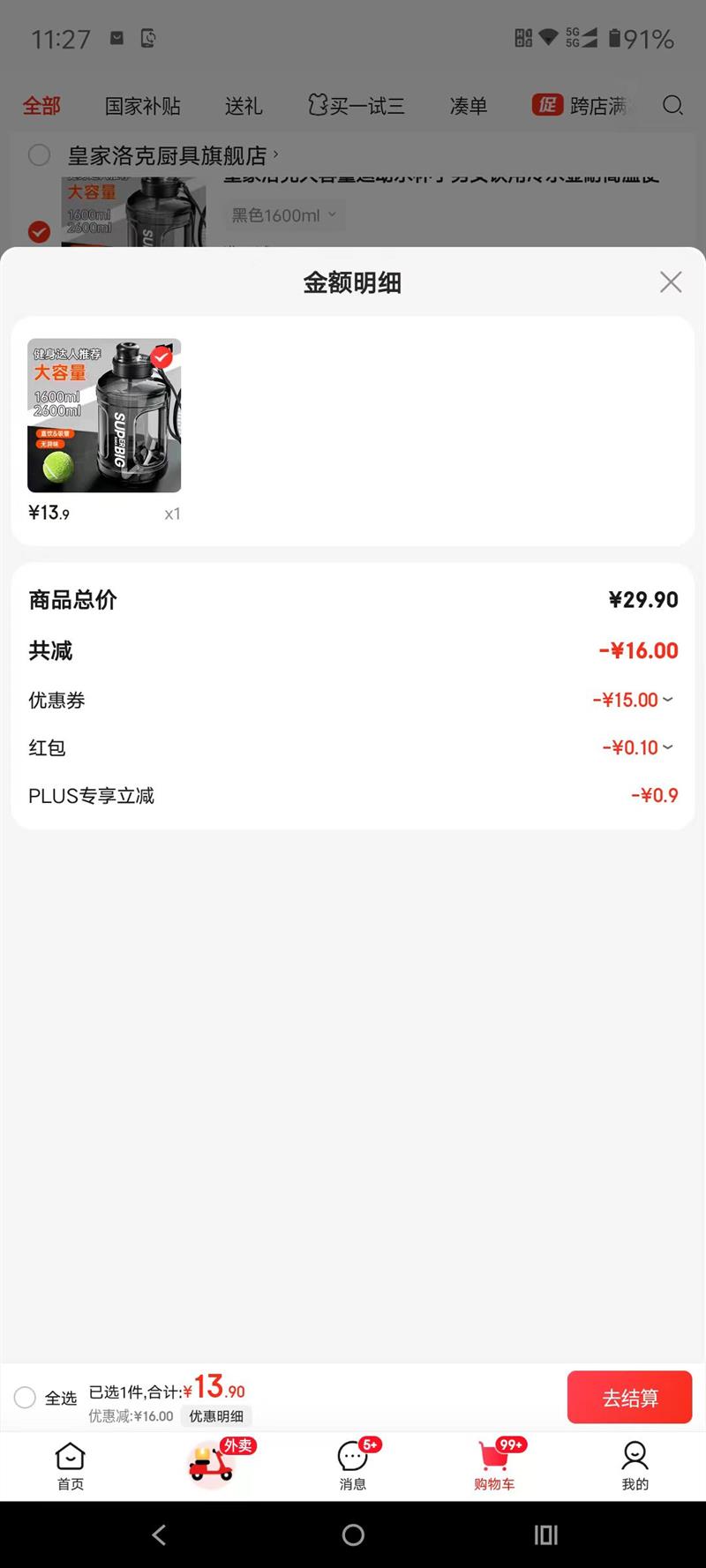 16.66元(叠加全能卡红包后14.66元)杭州、苏州可做到