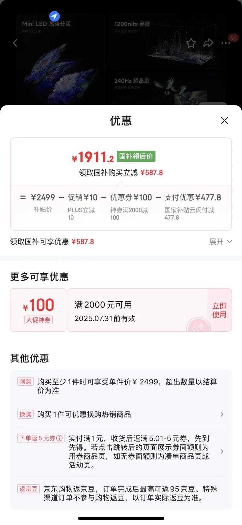 plus会员立减1%