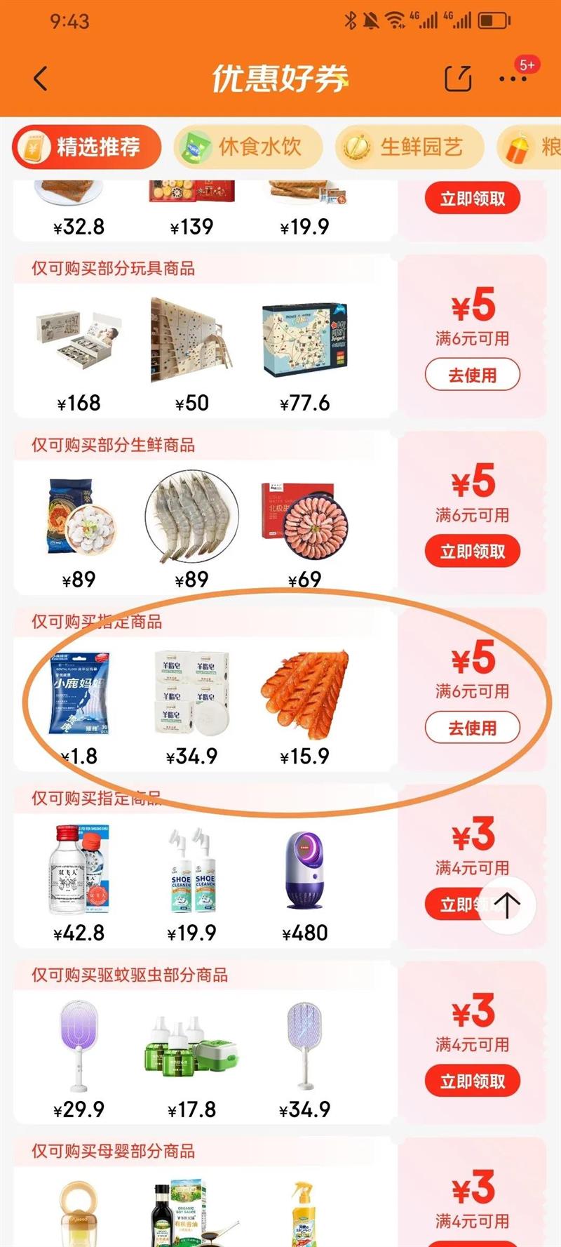 满6元减5元