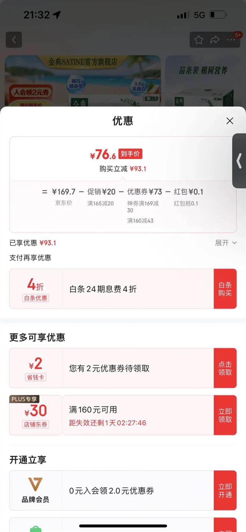 满160元减43元