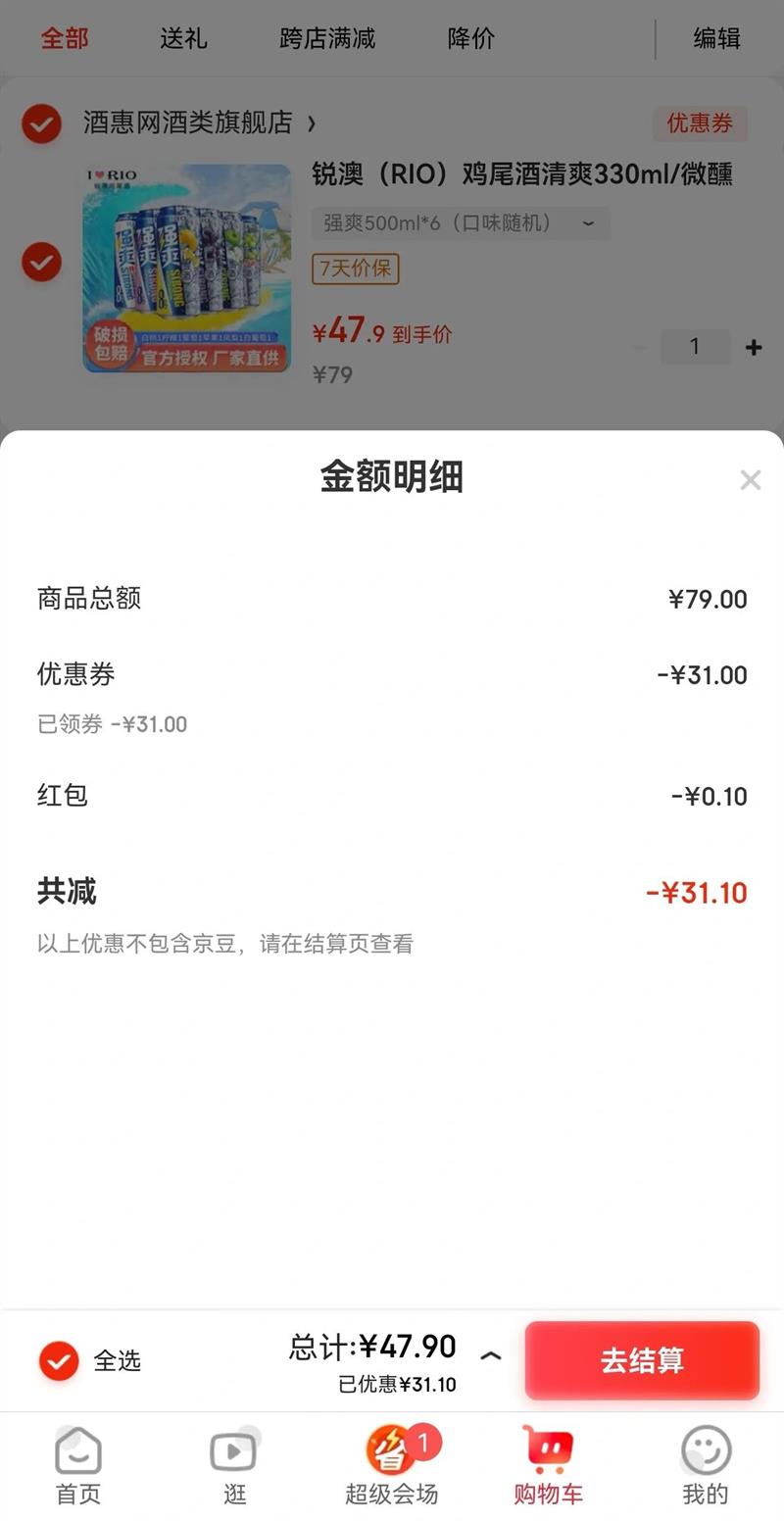 21.41元(叠加全能卡红包后19.41元)
