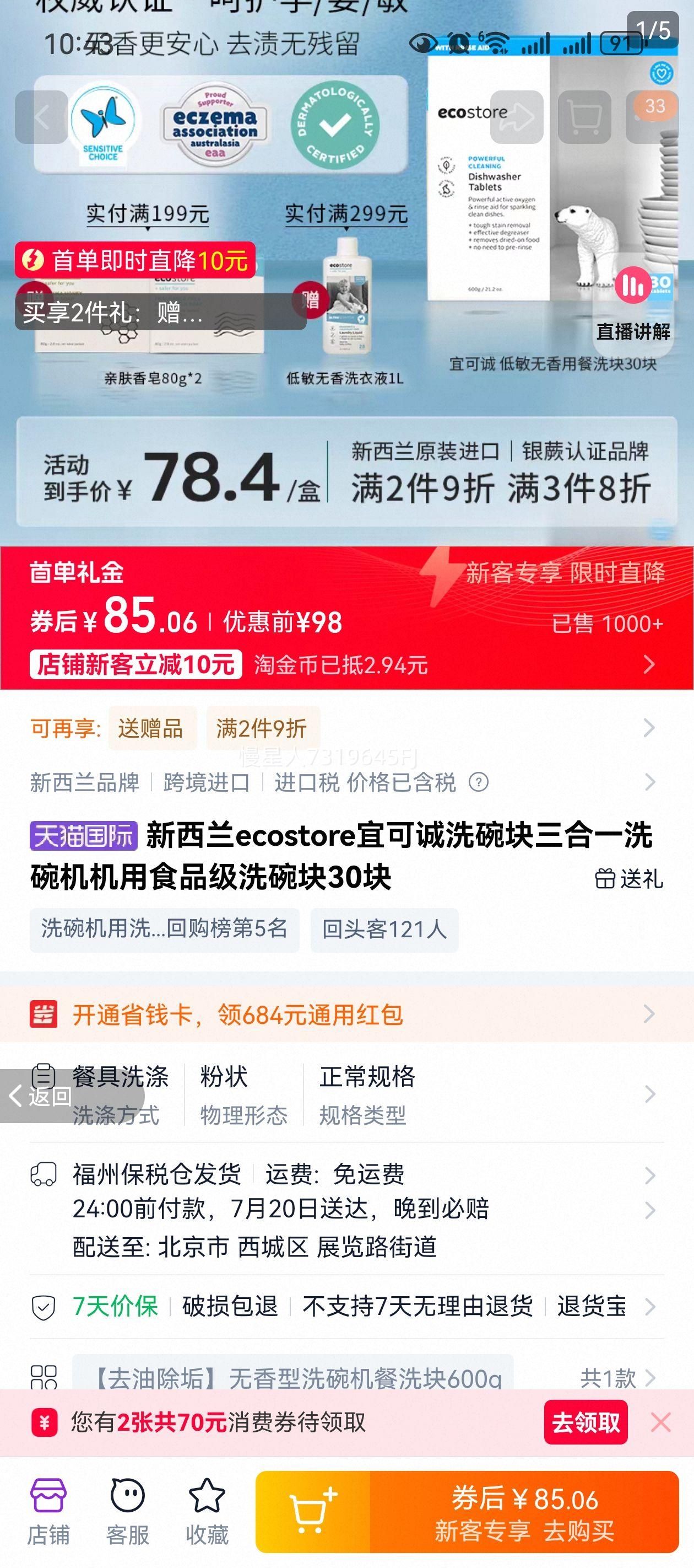 22.31元(叠加全能卡红包后20.31元)浙江、江苏、陕西等地区可做到,苏州低至17.56元