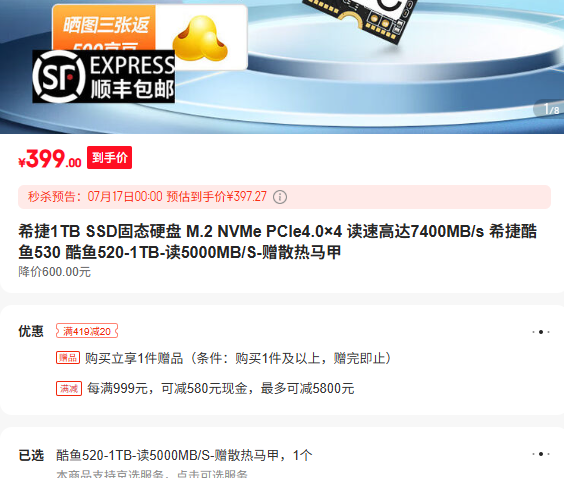 每满999减580,最高减5800元(5800)