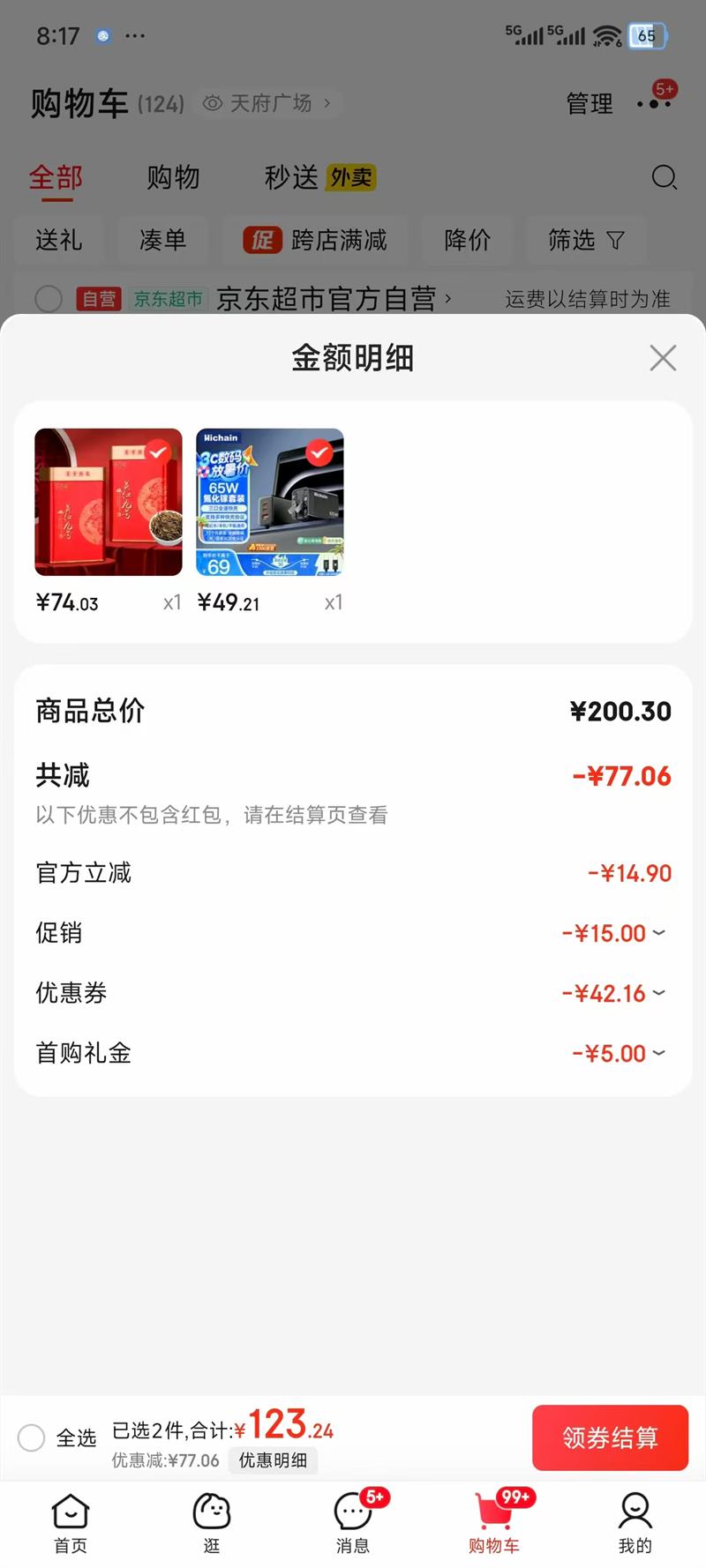 68.56元(共68.56元+10.44元淘金币)