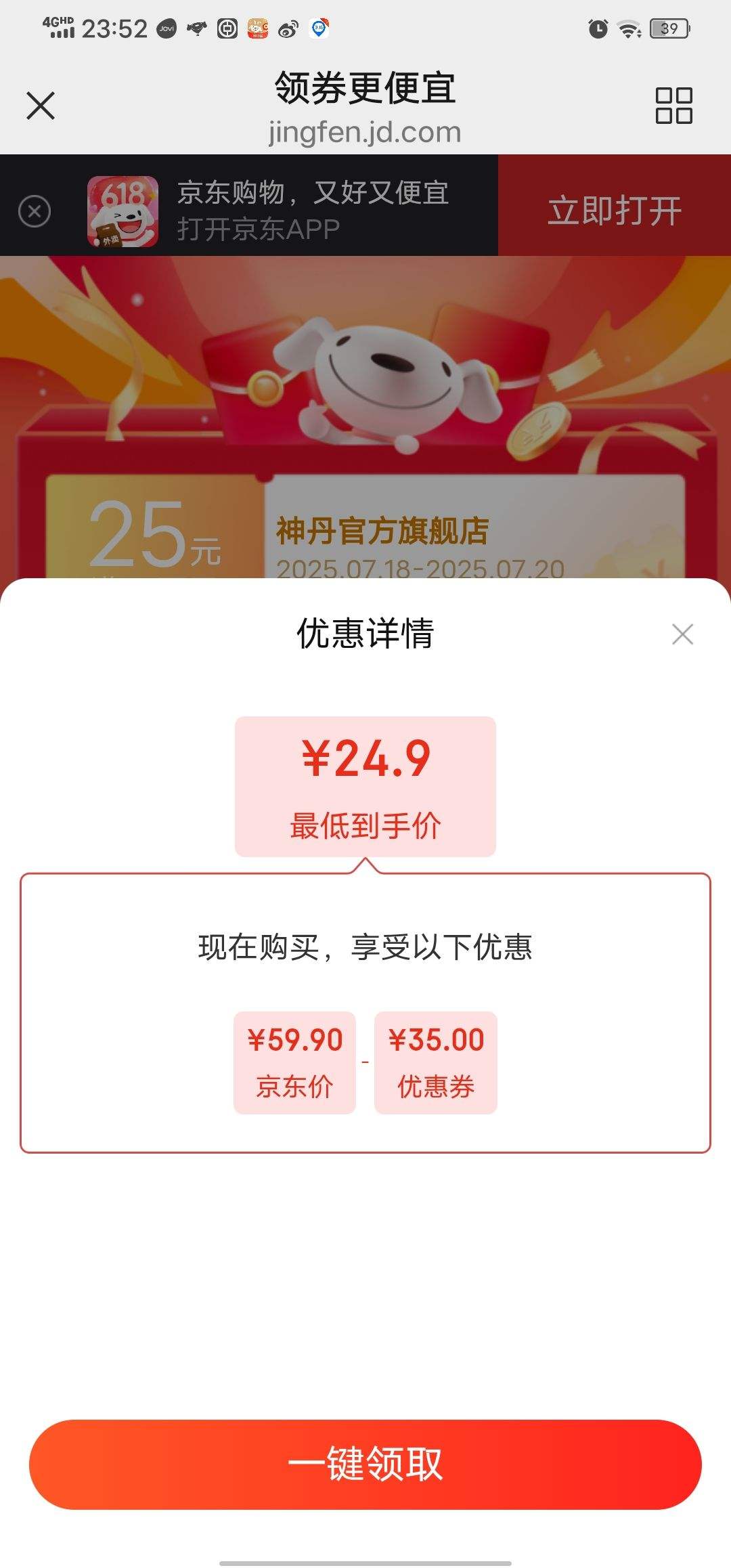 3.9元(需换购,可以重复购买,部分地区无货)