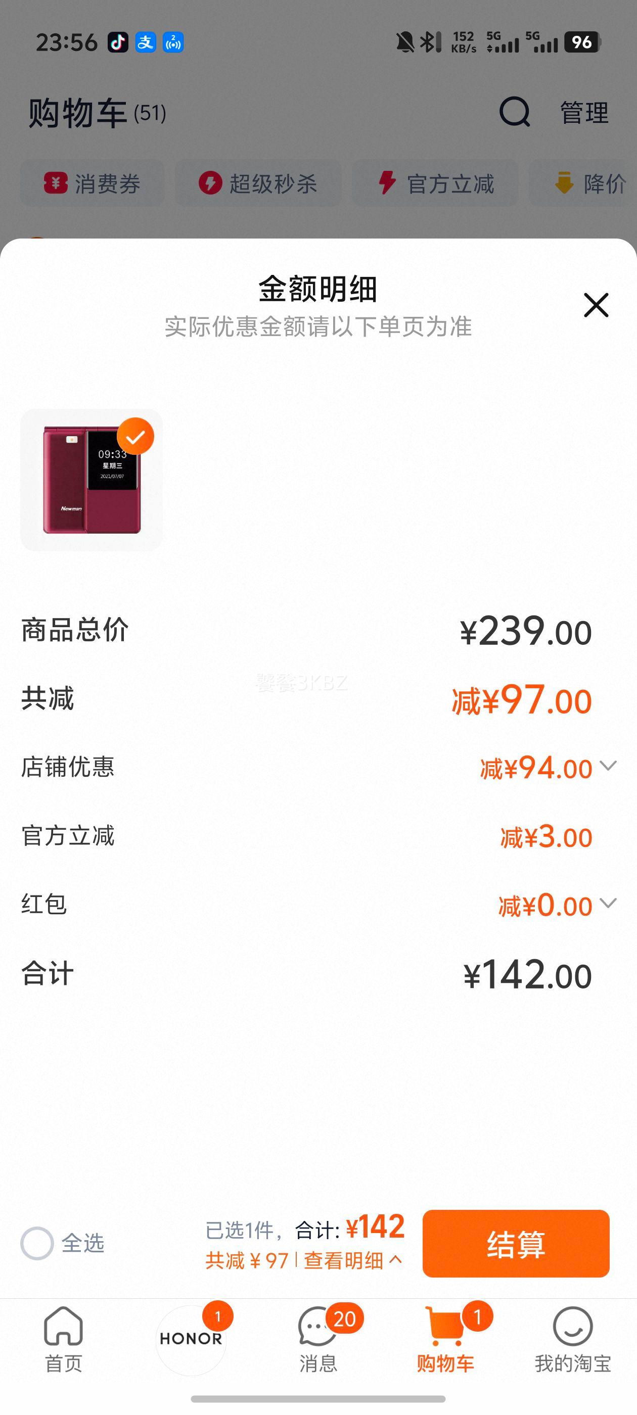 22.31元(叠加全能卡红包后20.31元)浙江、江苏、陕西等地区可做到,苏州低至17.56元