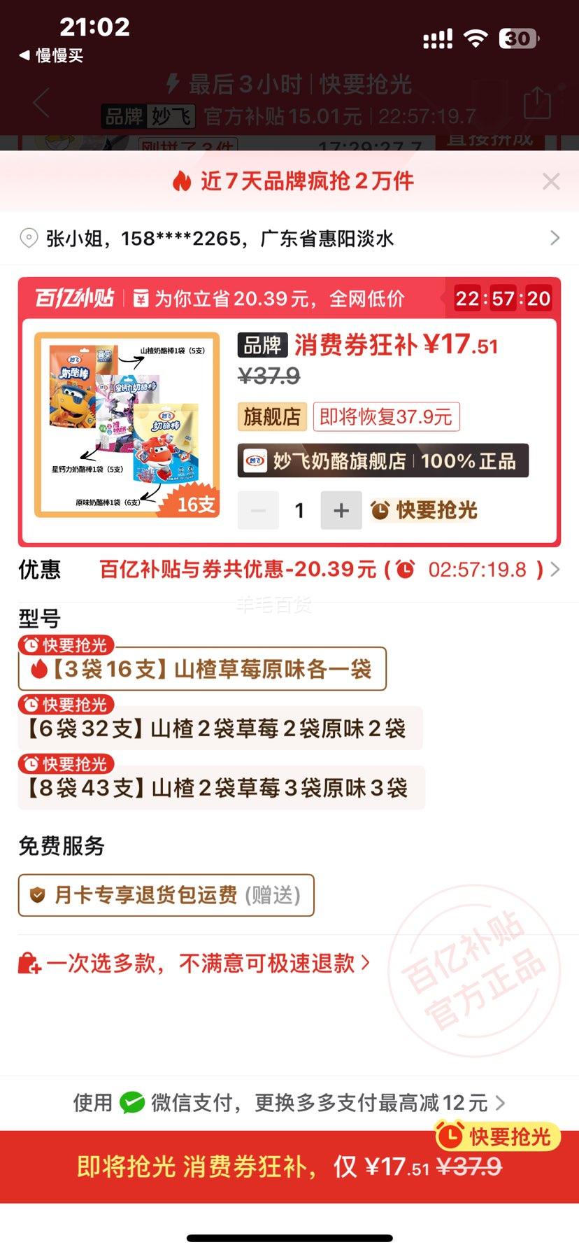 16.66元(叠加全能卡红包后14.66元)杭州、苏州可做到