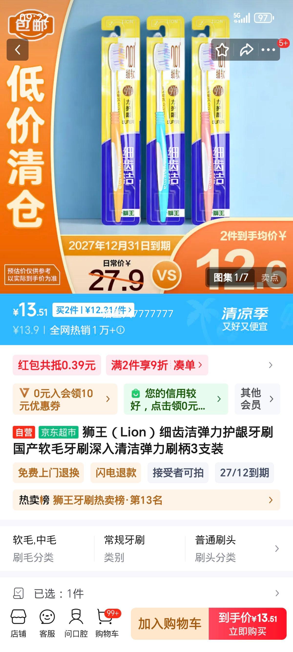 0.9元(需领券)