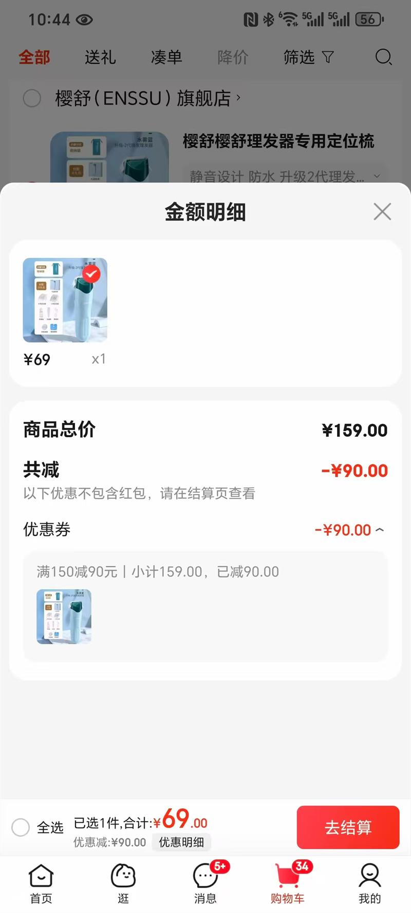 满159减90
