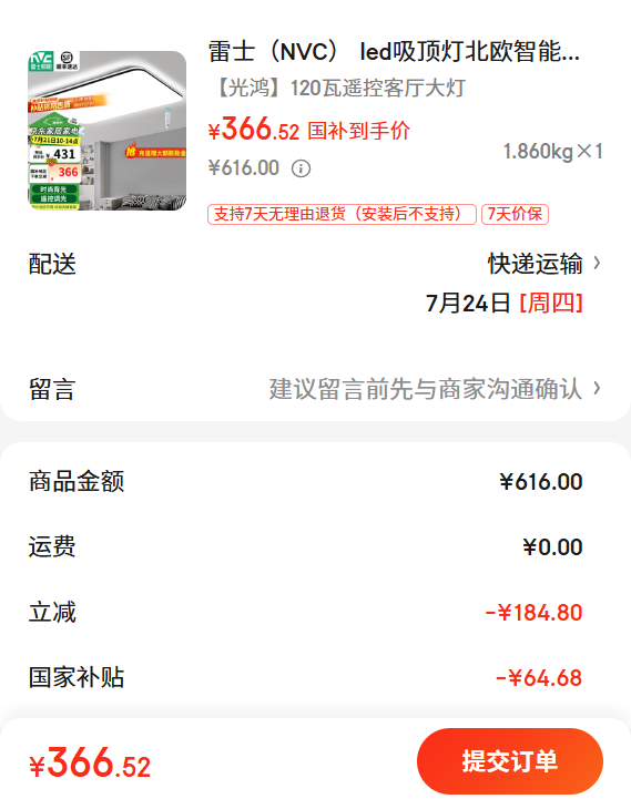 22.31元(叠加全能卡红包后20.31元)浙江、江苏、陕西等地区可做到,苏州低至17.56元