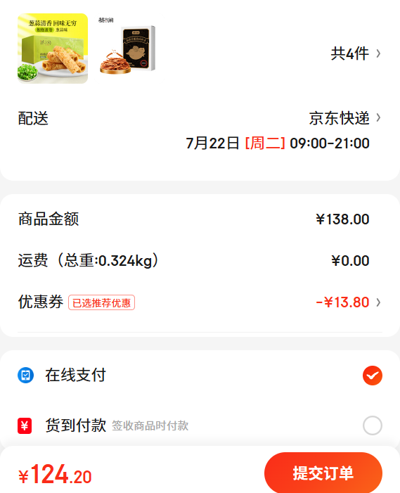 22.31元(叠加全能卡红包后20.31元)浙江、江苏、陕西等地区可做到,苏州低至17.56元