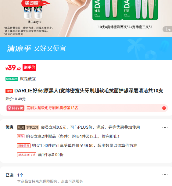 满1件,打8折