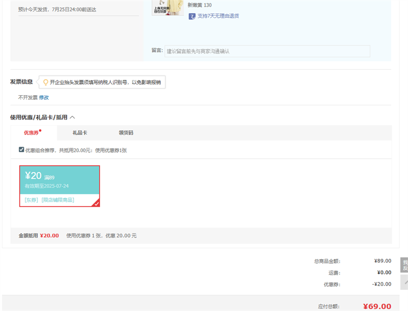 满89元减20元
