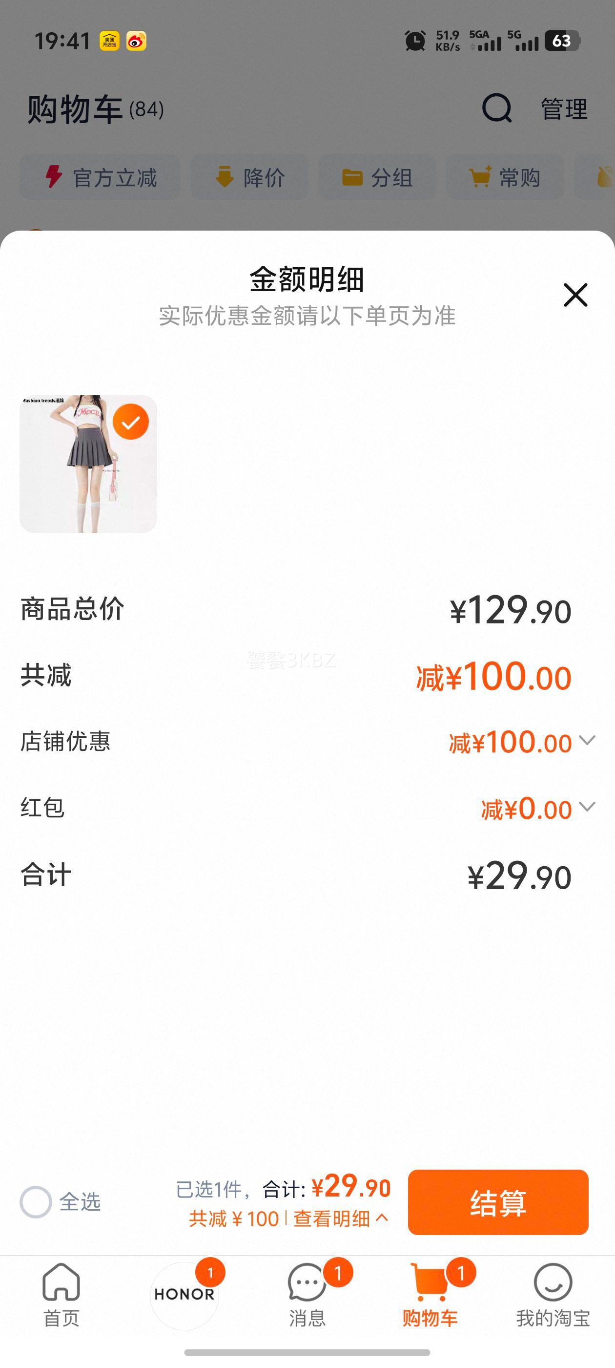 68.56元(共68.56元+10.44元淘金币)