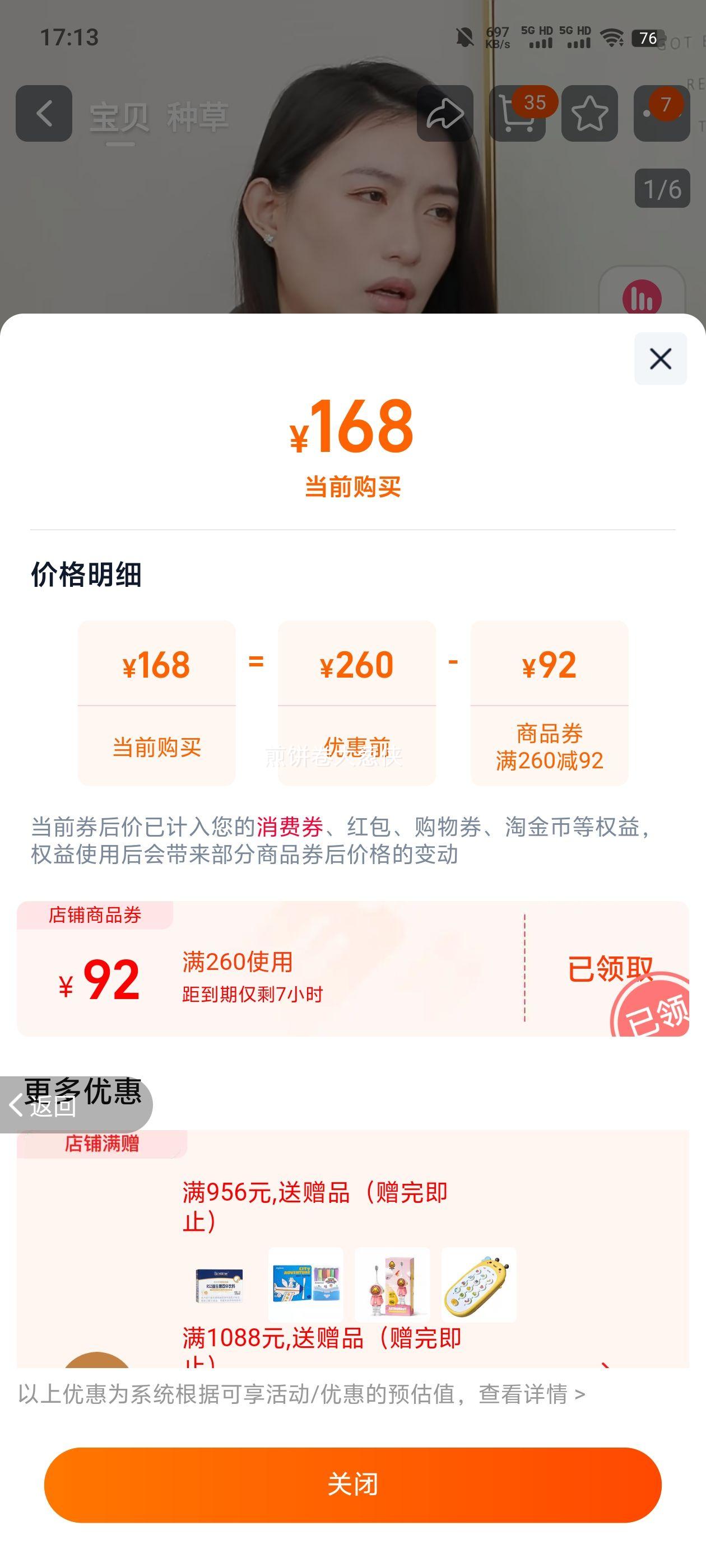 68.56元(共68.56元+10.44元淘金币)