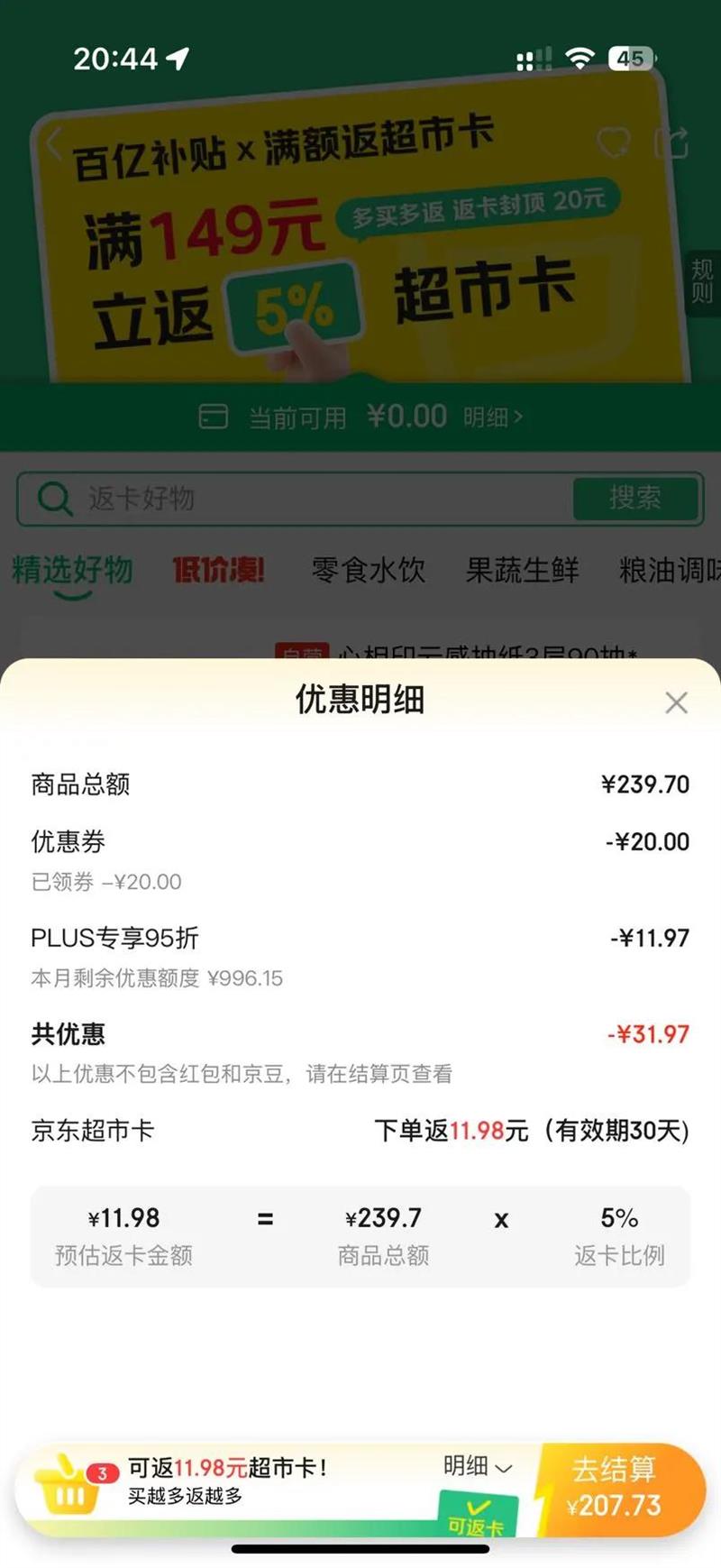 返京超卡11.98 总额5%
