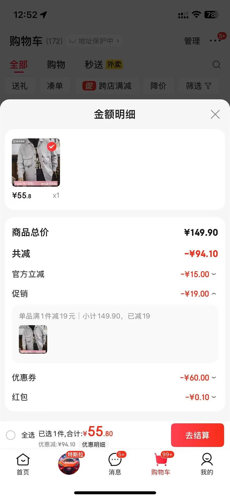满1件减19元促销