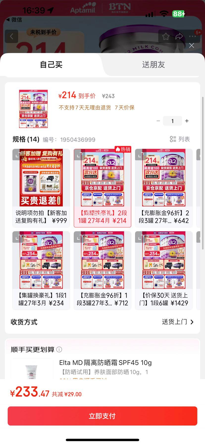 22.31元(叠加全能卡红包后20.31元)浙江、江苏、陕西等地区可做到,苏州低至17.56元